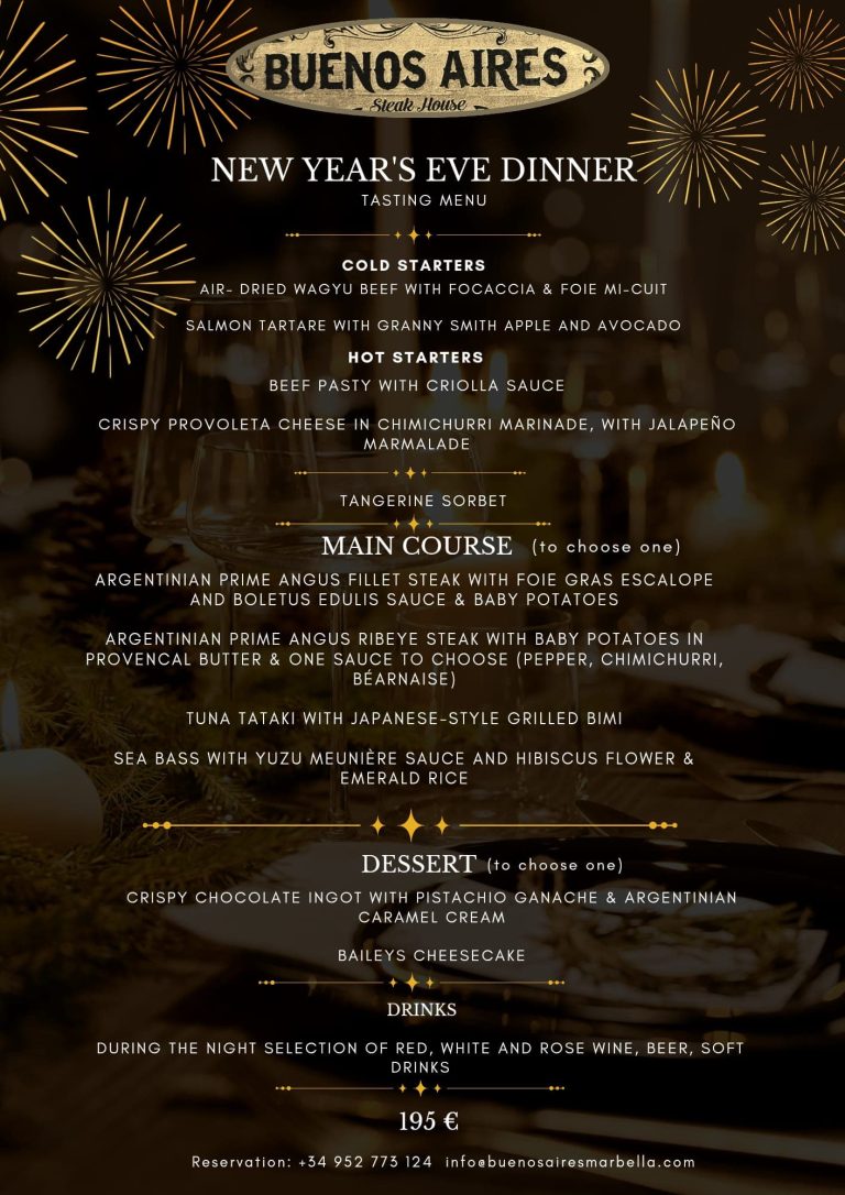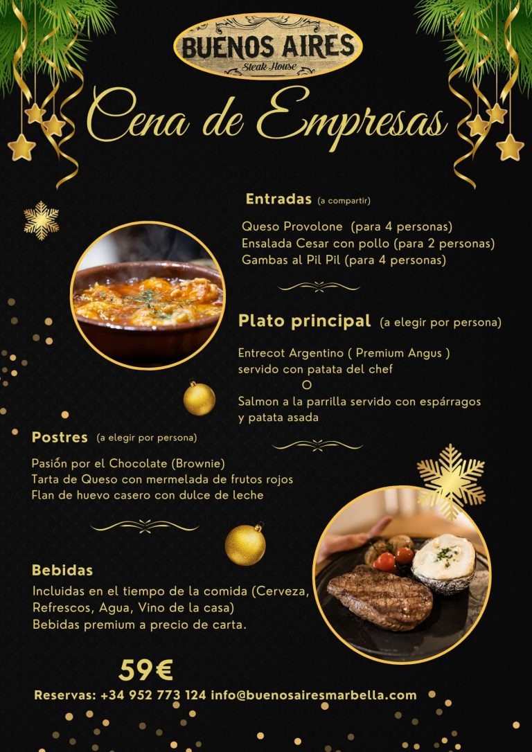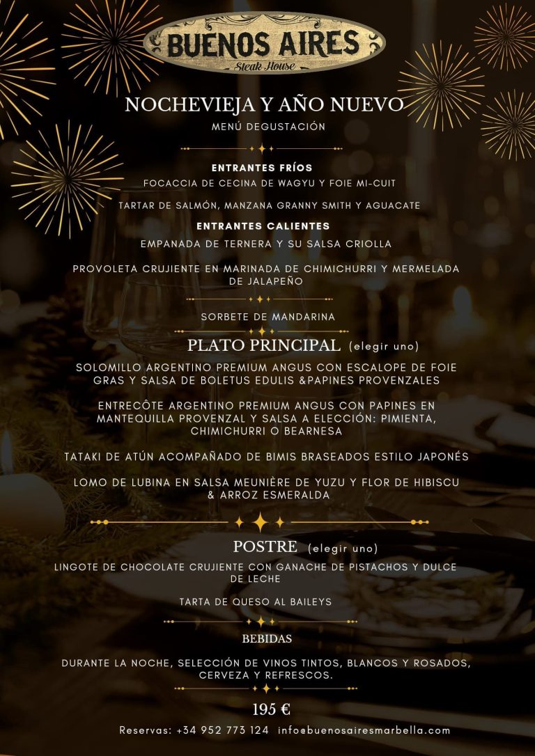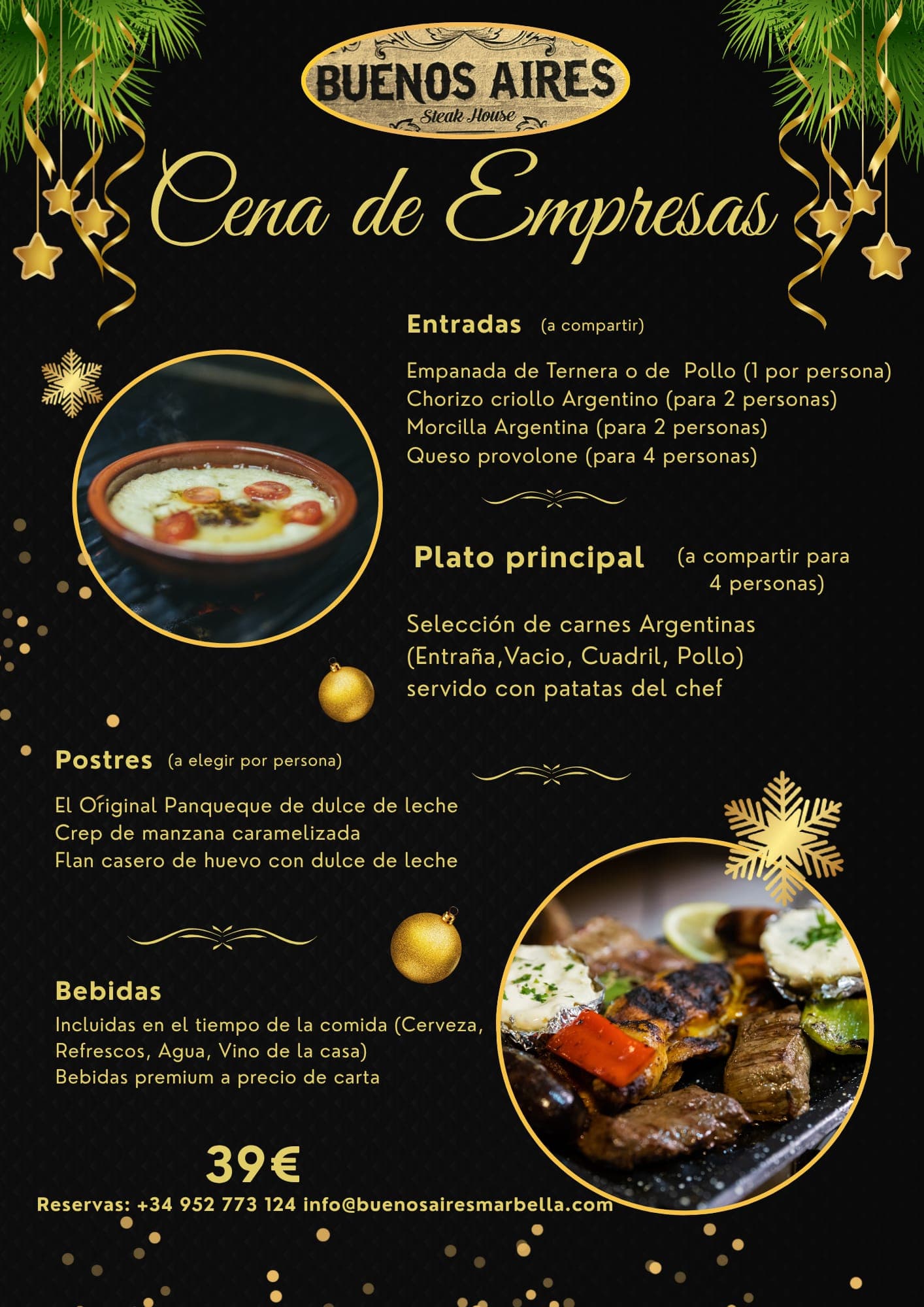 Discover BUENOSAIRES steak house in Marbella old town Company Celebrations CENAS DE EMPRESA 2025 Celebrate with us New Years Dinner 2025Nochevieja 2025 Welcoming ATMOSPHERE Visiting our restaurant will fill you with warmth and put you in food heaven Friendly STAFF Delicious FOOD Relaxing ATMOSPHERE Reservations COME AND ENJOY THE HOSPITALITY & FOOD When would you like to book? Party size: 1 2 3 4 5 6 7 8 9 10 11 12 13 14 15 16 17 18 19 20 21 22 23 24 25 26 27 28 29 30 31 32 33 34 35 36 37 38 39 40 41 42 43 44 45 46 47 48 49 50 51 52 53 54 55 56 57 58 59 60 61 62 63 64 65 66 67 68 69 70 71 72 73 74 75 76 77 78 79 80 81 82 83 84 85 86 87 88 89 90 91 92 93 94 95 96 97 98 99 100 Preferred dining time: BOOK MY TABLE Please submit your reservation details and we will contact you to confirm your booking